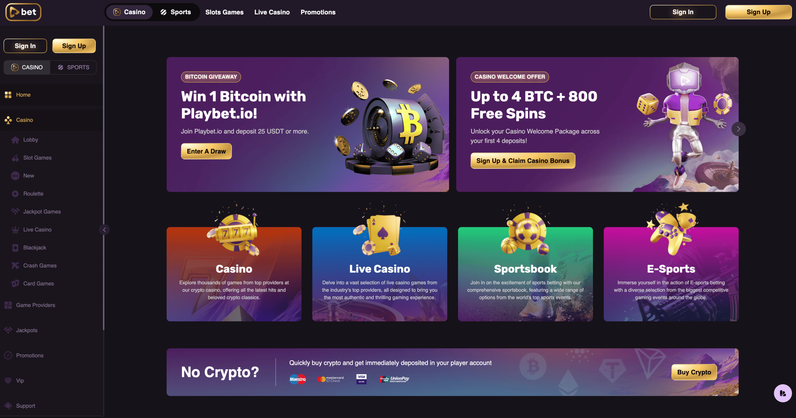 Playbet.io Casino 是一家现代化的在线赌场,致力于为玩家提供丰富多样的老虎机游戏体验。凭借先进的技术和完善的服务体系,Playbet.io 吸引了大量老虎机爱好者。